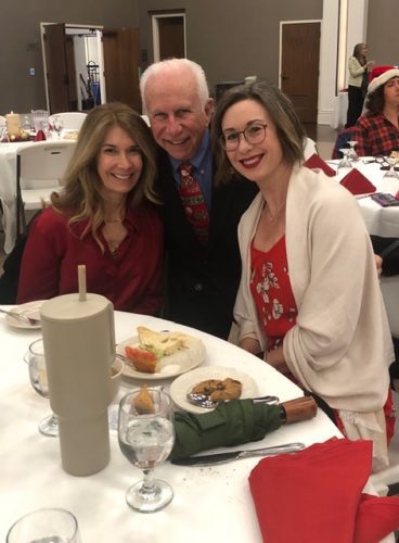 President Ella applauded Elfrena Foord for beautiful holiday piano music during the wine reception, and she acknowledged photographer John Swentowsky. She thanked greeter Kayla Abbott, granddaughter of Bill Proffit, and saluted the day’s sergeants-at-arms, Jamie Furlong and her twin sister Noelle. The duo circulated around the room to introduce the many guests in attendance.