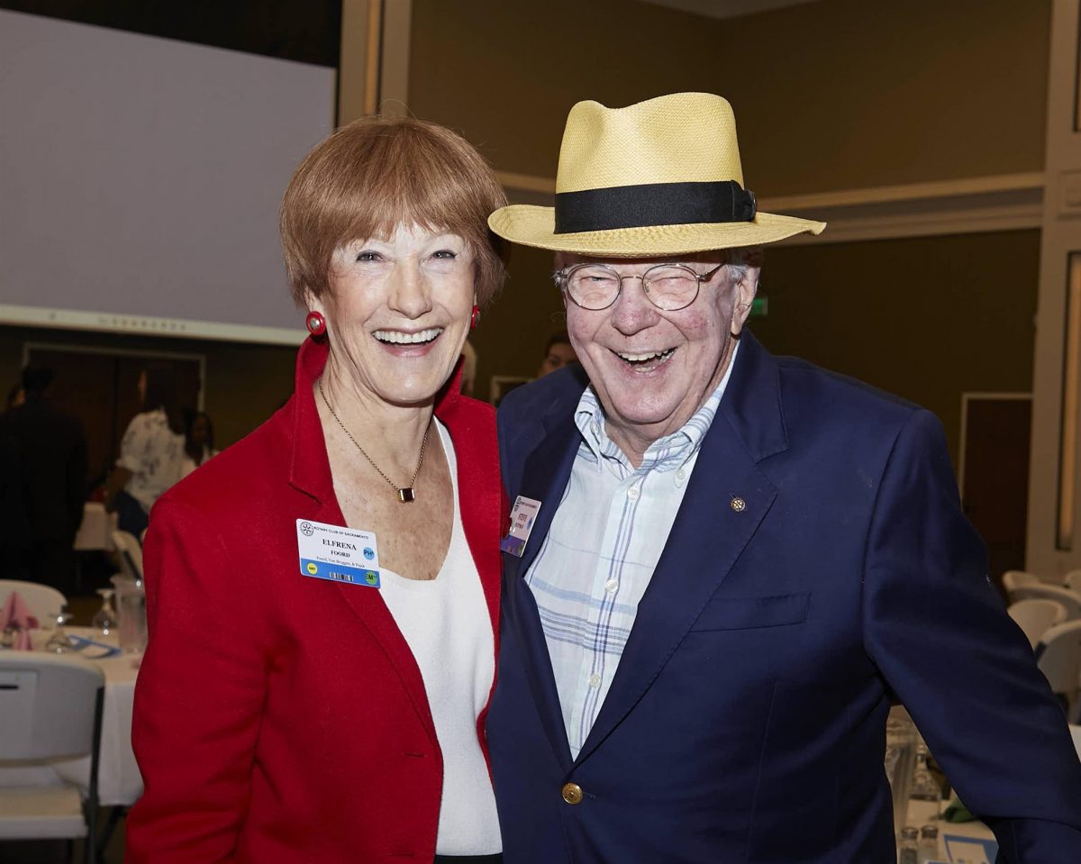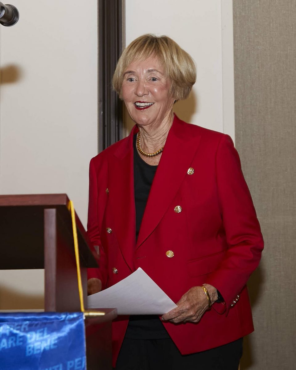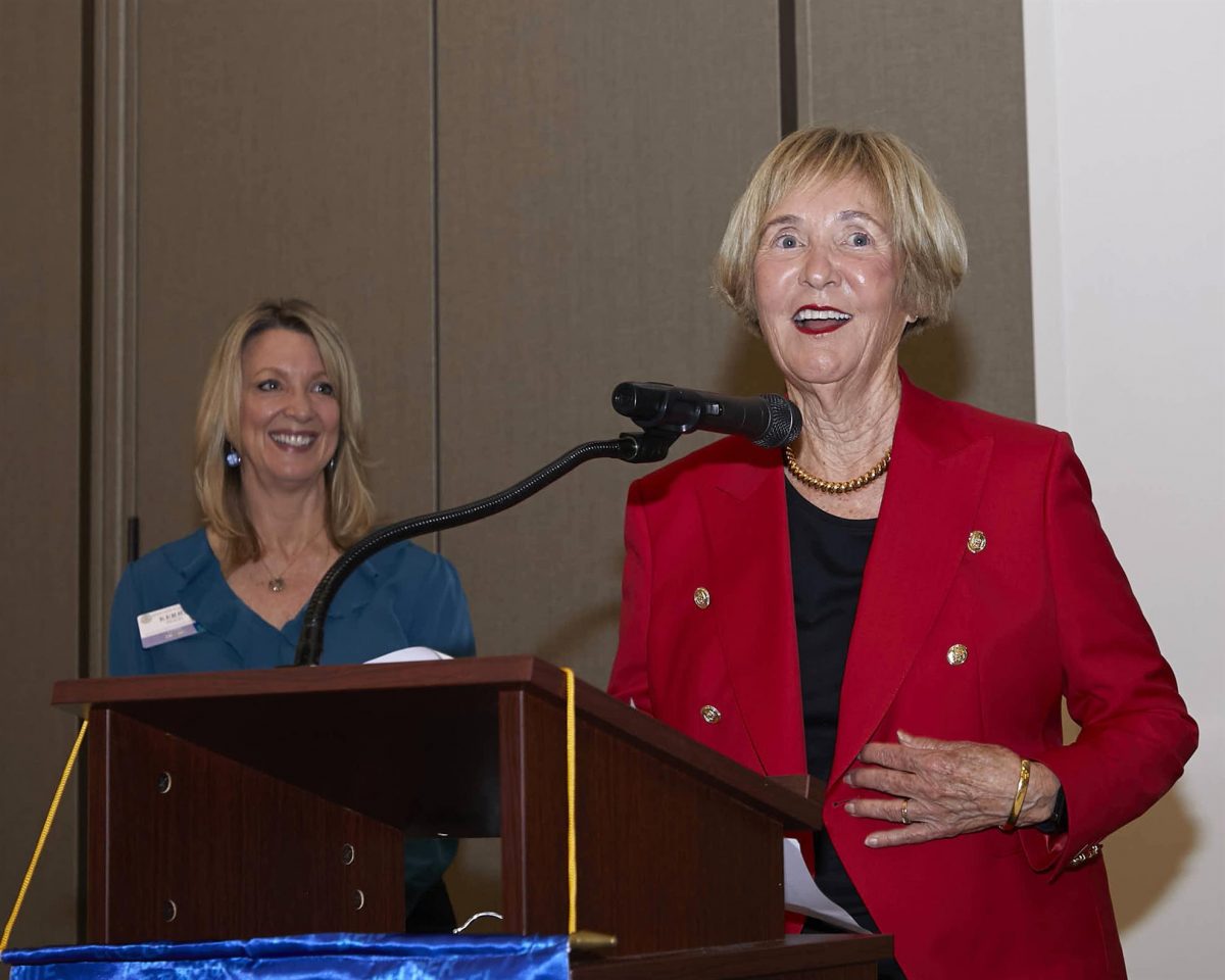 Committee chair Maggie Hopkins had the honor of introducing this year’s winner, who truly embodies Service Above Self and the very qualities that defined Jean Runyon: leadership, generosity, joy, and an unwavering commitment to others. Our honoree was born in San Jose, and her leadership skills were evident early, as she became the first student body president at her high school. At UC Berkeley, she juggled classes with student government, cheerleading, and summer jobs on the Santa Cruz pier. Our honoree earned a masters in education and Cal, then a doctorate at USC, and a postdoc fellowship at UCLA. Doctor Honoree commenced a career in higher education, teaching psychology and human development at American River College and Sierra College, and rapidly rising through the ranks to become Dean of Social Sciences at Sacramento City College – and then the first woman president of Napa Valley College. It would take a lot to separate her from this beloved job, but meeting the love of her life Tom inspired her to move to Sacramento and marry. Her career didn’t suffer, as Dr. Honoree was selected as the first woman Chancellor of the California Community College system—the largest system of higher education in the world. Her brilliant leadership was saluted with “Woman of the Year” by the California Legislature; the “Woman of Achievement Award” for service to the people of California; the International Award of Distinction for College Presidents, and many more.