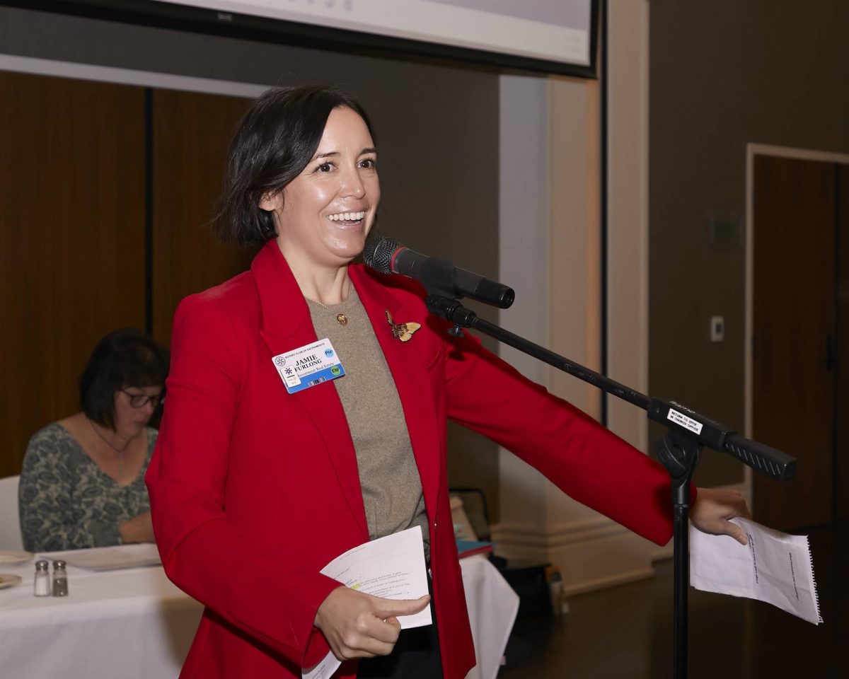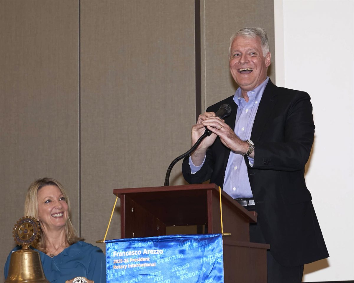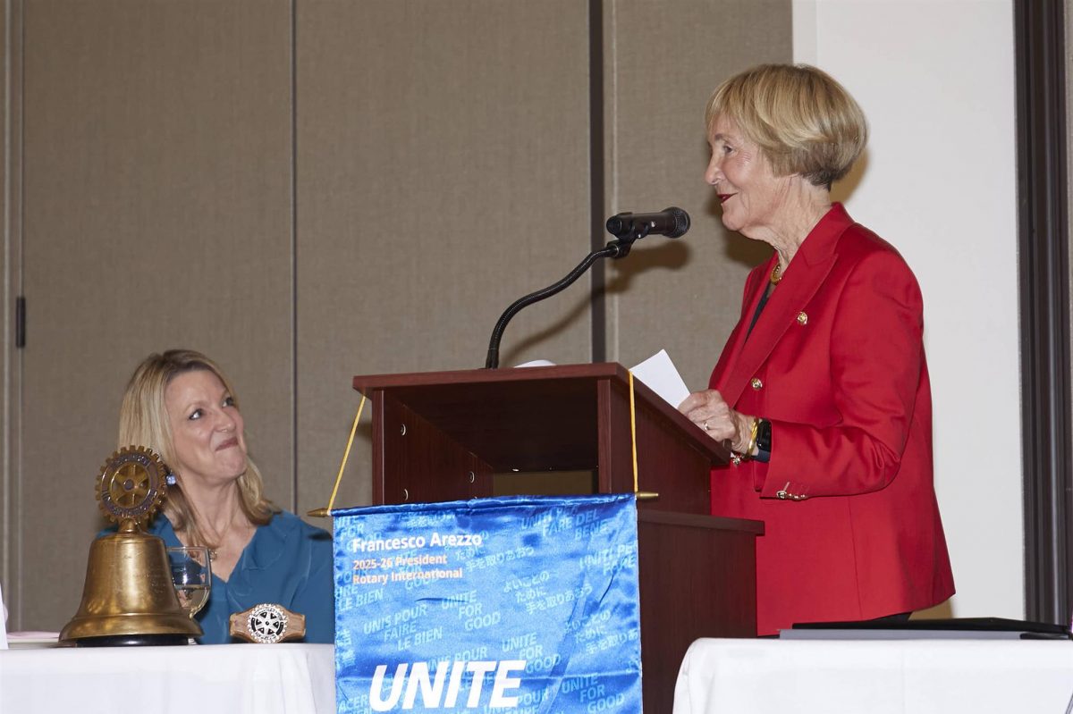 2025 Jean Runyon Award recipient and PEN Jamie Furlong delivered the Thought for the Day: “What’s actually important? Rotary is my answer to that problem. Showing up here every week is a promise I make to myself – a standing commitment to something values-based and important with no due date.”