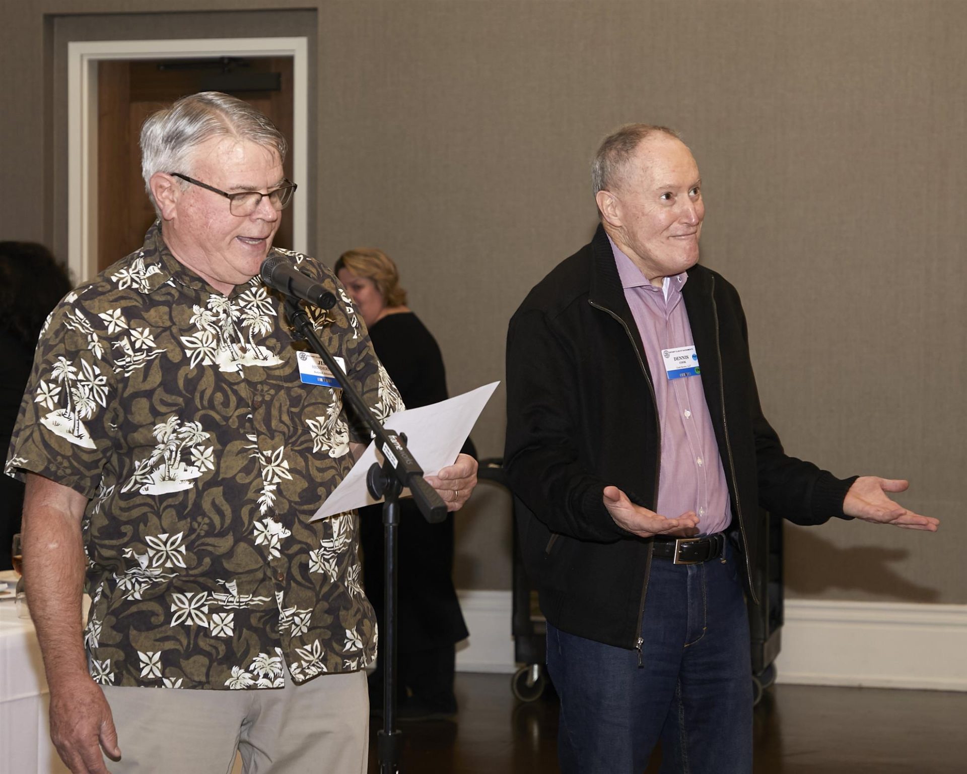 Wasting no time, Prez Kerry thanked the meeting crew – greeters Bruce Hester and The Gabriels (Gendron and de la Torre), wine reception hostess-with-the-mostest, Nancy Smith-Fagan, and a couple of Johns (Swentowsky and Wood) on photographer and Pulse reporter.