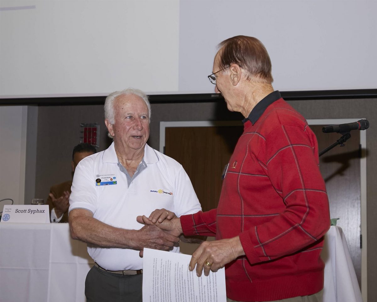 Bruce Hester highlighted Clayton Lee. Clayton has been a Rotarian 46 years and a club member since 1994. Bruce shared Clayton’s entrepreneurial journey, including major industrial projects and early relationship-building in China when the door first opened for business connections. Then Bruce focused on Clayton’s purpose-driven work through Rotary: bringing clean water to disadvantaged communities. The club’s International Service Committee, on which Clayton serves, began with a small Rotary grant in Cambodia in 2012, expanded to Ethiopia, and later partnered with World Vision to scale impact with long-term training and maintenance. To date, Clayton and fellow ISC member John Phair have helped ISC complete nine water projects in Africa and Central America, with a goal of reaching one million people with clean water. Bruce recounted Clayton’s helicopter wedding proposal that turned into 48 years of marriage, seven children, and 18 grandkids.