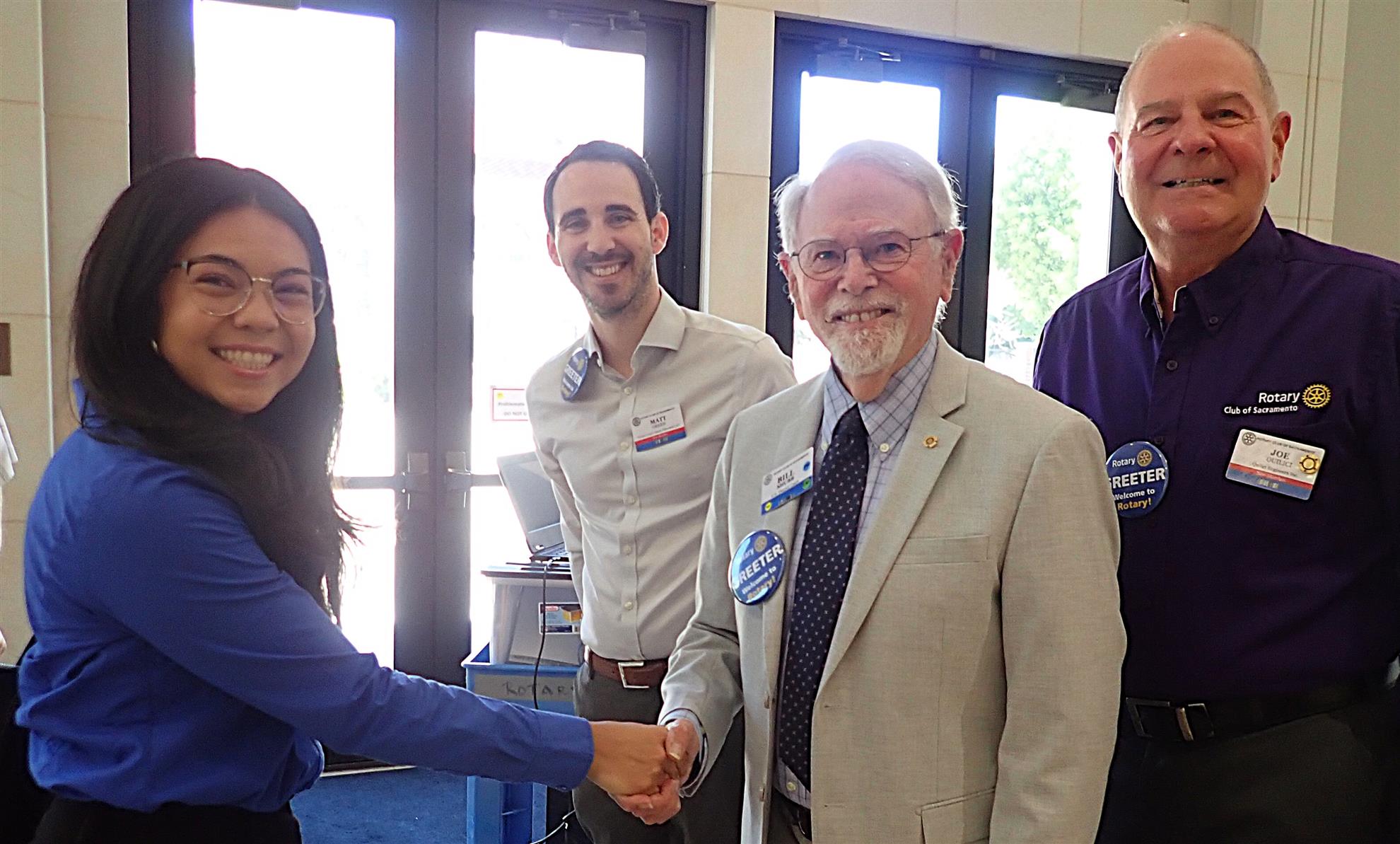 The first “normal” meeting of President Kerry Wood’s term got off to an inauspicious start when the setup team discovered that neither of the mics were working. But this is a place where the Rotary Network truly stepped up – District Governor-Elect Dave Veden, owner of NorCal Pro AV Support, rushed over and replaced a transponder on the fly, restoring one mic to mostly-functional status. Big props to him, President Kerry, Sergeant-at-Arms Sarah Hodge, and others for rolling with the punches, getting one mic circulated among the entire assembly, and identifying the magic spots where the mic could consistently catch the signal! True pros.