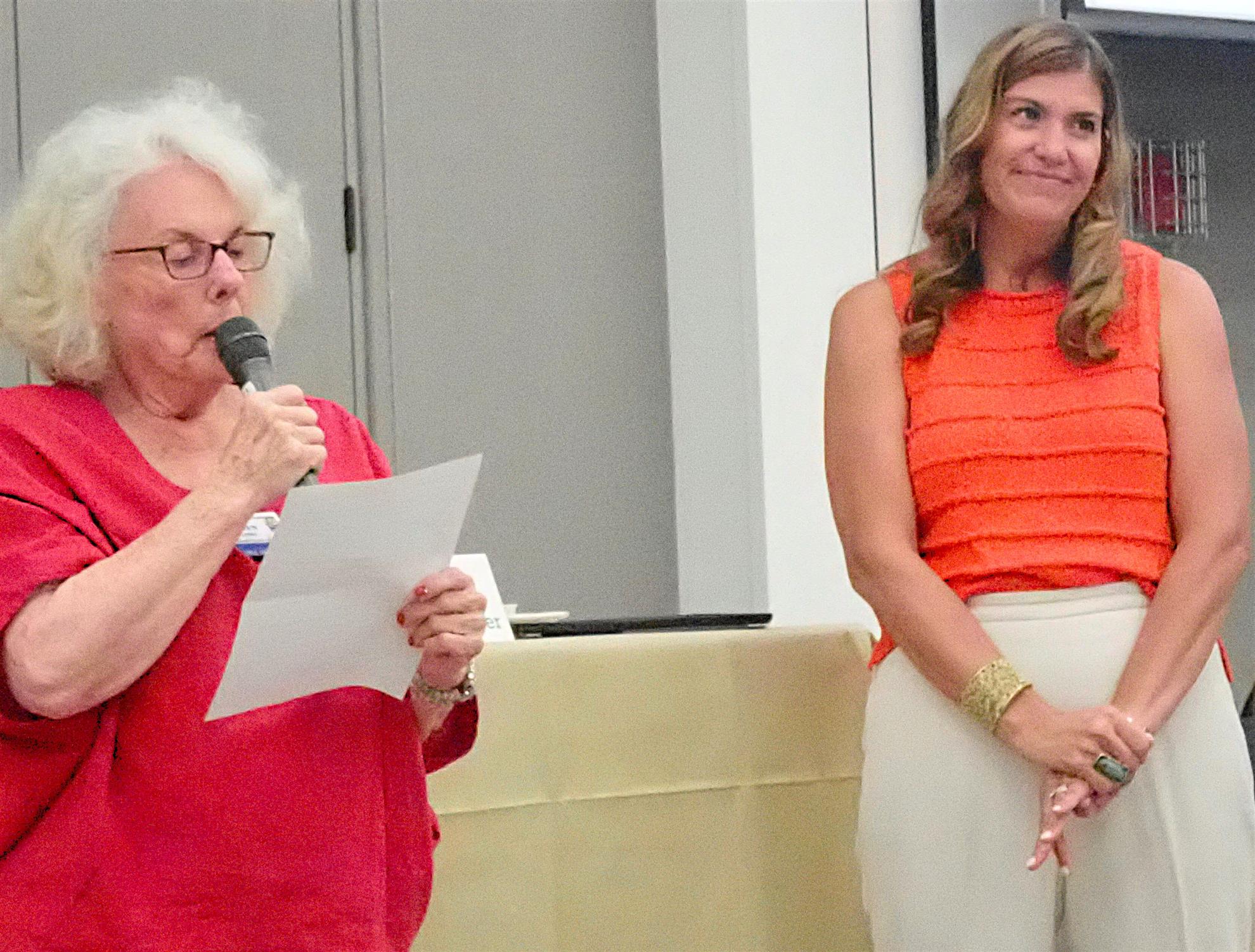 Sergeant-at-Arms Sarah Hodge announced her intention to close each meeting with a “Smile for the Day.” Her first: Q: What did the fish say when he swam into a wall? A: Damn.
