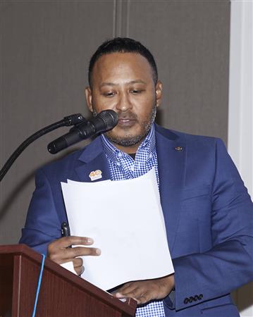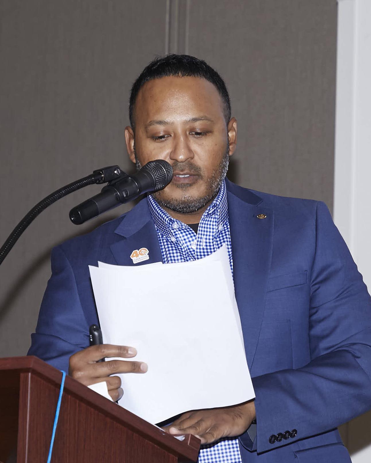 Justino Santana was next up to be profiled by Elfrena. He’s been a club member for four years. Justino’s parents immigrated from Mexico, and he is the second oldest of five boys. At only 8 or 9 years old, Justino began working weekends and summers in the agricultural fields. He often turned the work into a game with his brothers, seeing who could count the most boxes or pick the most fruit/vegetables. At 15, Justino helped his dad start his own farm contracting company, and later, while still a teen, he managed a restaurant the family had purchased. Eventually Justino became the first member of his family to earn a college degree. He is now a vice president with Capitol Tech Solutions.