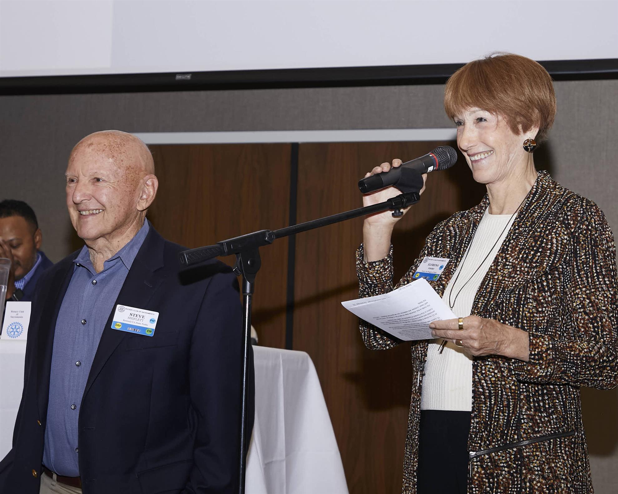 Elfrena Foord spoke about Steve Shiflett, a Rotarian for 38 years. While working for the state Department of Parks and Recreation, Steve took part in a seven-week Rotary Group Study Exchange trip to Nigeria with five others. Highlights included staying at an opulent mansion deep in the jungle, where the welcome gift for each was a magnum of champagne!
