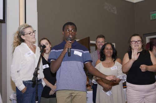 The club welcomed representatives from our Golf4Kids beneficiaries – Ralph Richardson Center, the Transitions program at Sacramento State, and Luther Burbank High School. President Bobby presented a ceremonial $45,000 check representing the fundraiser proceeds. “Hello friends,” said one student. Another teared up with excitement. With a big smile, one student said, “I am very special to be here.”