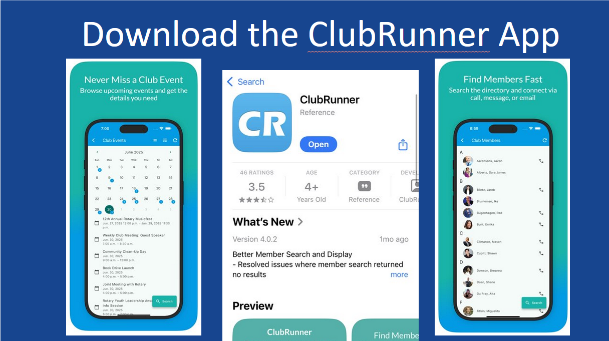 Sarah Hodge gave a quick tutorial on using the new, improved ClubRunner phone app that’s a handy tool, in particular its club directory. Like, maybe you need to type Steve Johanson’s name for some reason and need the correct spelling. Bam.