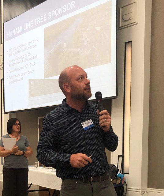 On the generosity topic, numerous Rotarians made club contributions celebrating good news. These included PP Jim Leet’s 47th wedding anniversary, PE Keefer’s salute to the RYE team, Michelle See’s enthusiasm for new robot Sophie at her Monster Laundry operation, Rhonda Poppen’s launching of a new grantwriters’ organization, and PP Todd Koolakian donating in honor of Tom Bacon’s heroic fundraising efforts as a Challenge Champion for Sac Century (over $10k this year already).